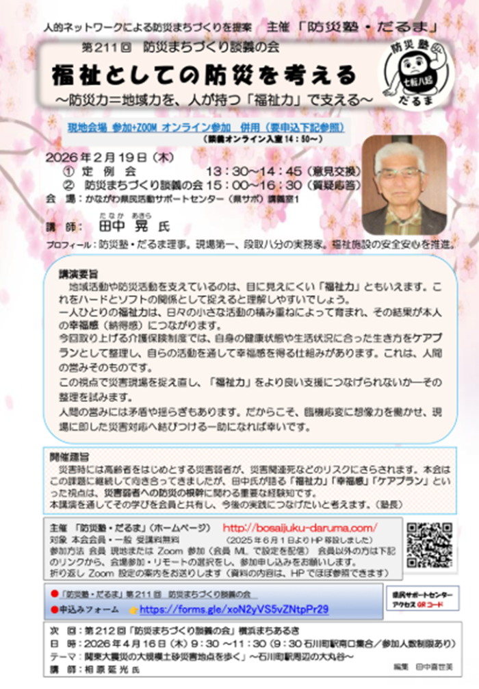 - 防災塾・だるま2025年度通常総会報告(速報)